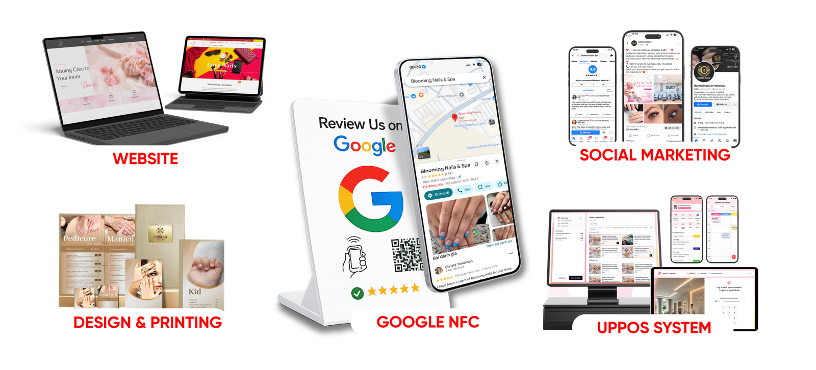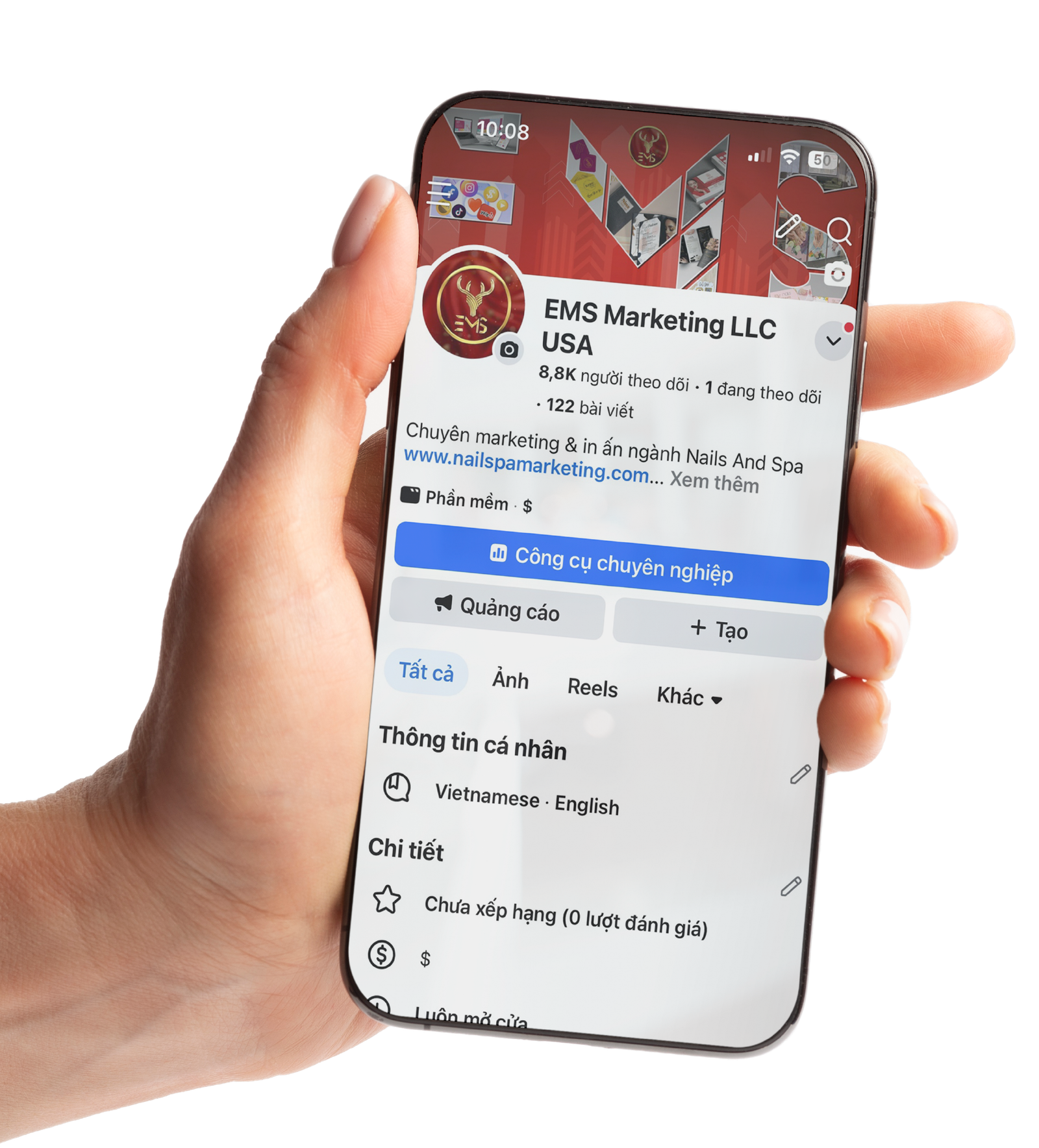 EMS Marketing – Chuyên cung cấp các giải pháp Digital Marketing, Social Media, Thiết kế in ấn Menu, Poster, Website chuẩn SEO, Thẻ NFC Card 1 chạm và Hệ thống POS giúp quản lý salon 1 cách hiệu quả.